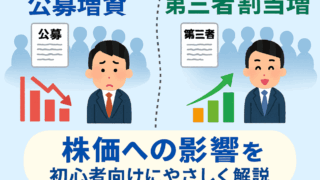 投資基礎 公募増資と第三者割当増資とは?|株価への影響を初心者向けにやさしく解説 📉 「増資」って聞くと、株価が下がりそうでドキッとしませんか?企業が成長するには、新しい資金が必要です。銀行から借りる方法もありますが、投資家から直接お金を集める 「エクイティファイナンス(株式発行による資金調達)」 という手段もあります。... 2025.09.23 投資基礎
